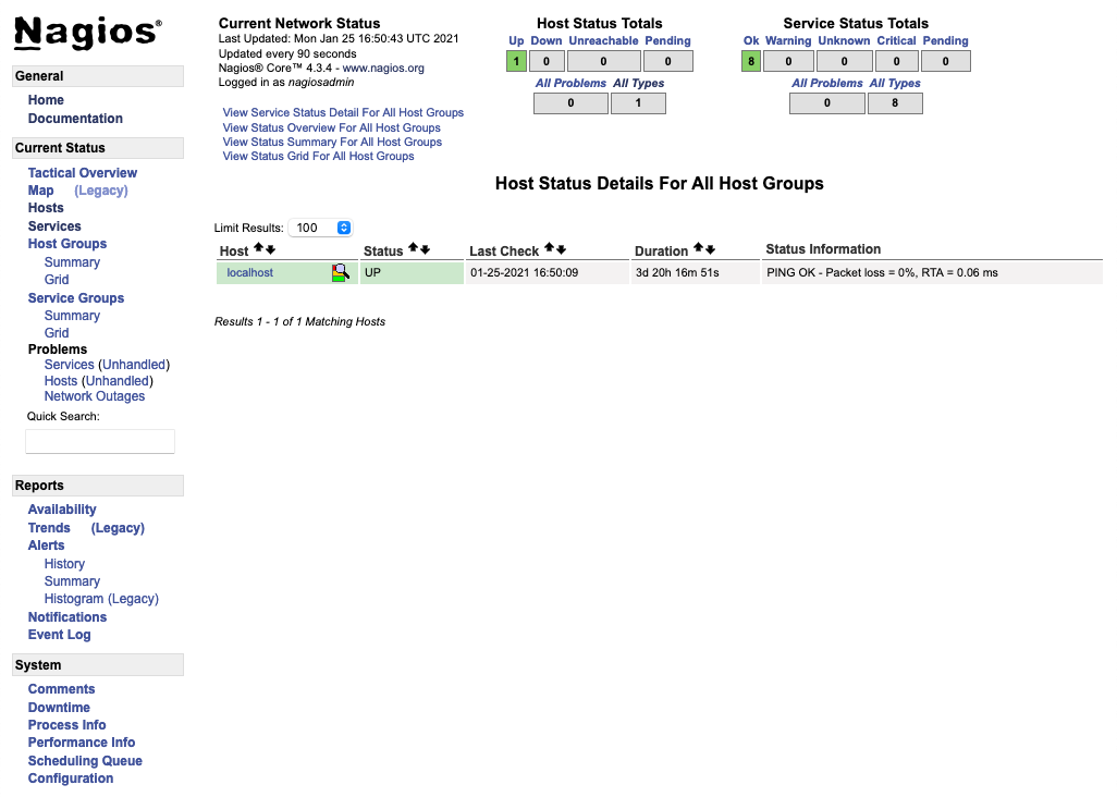 - You should be greeted by the Nagios landing page.