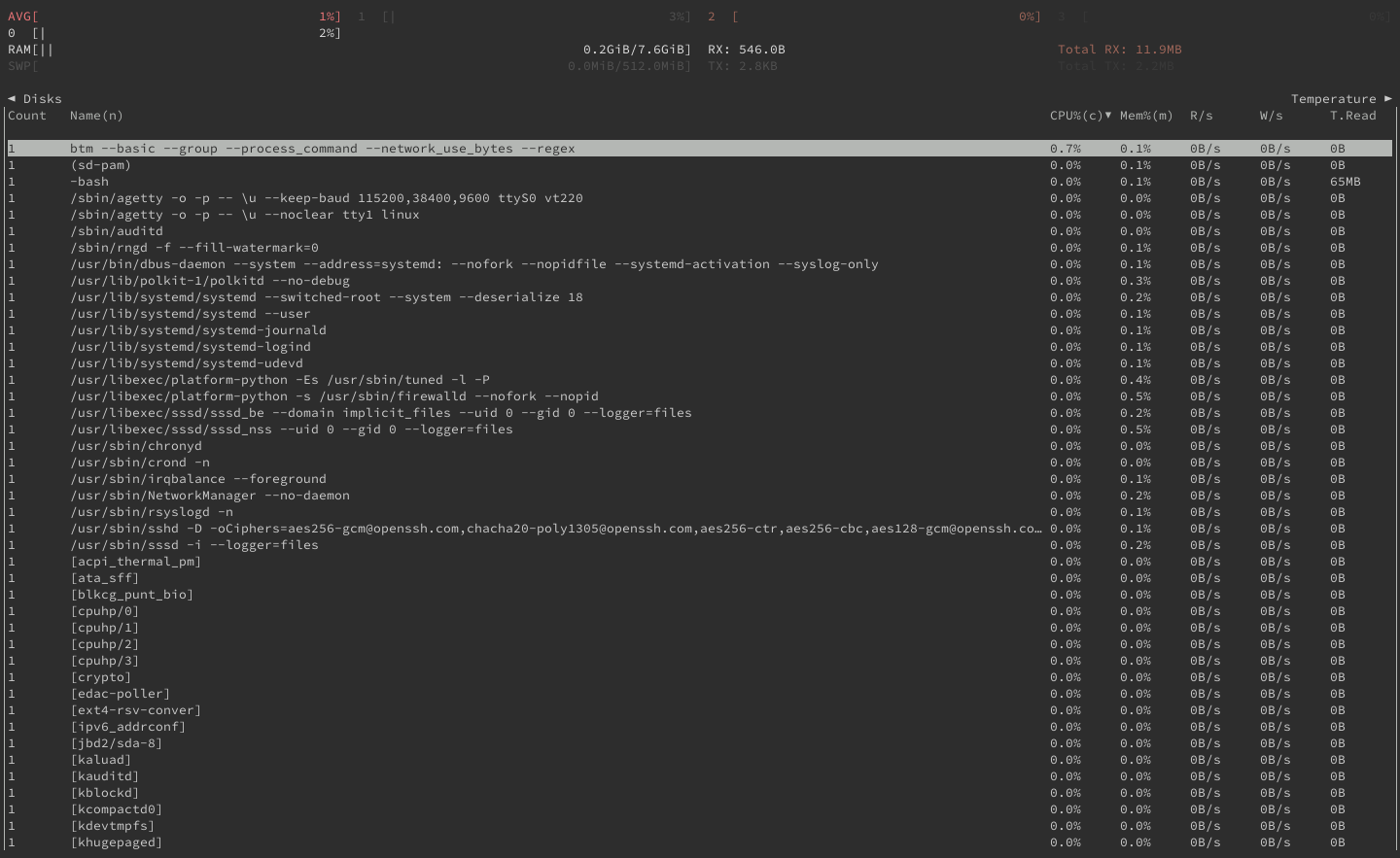--basic), which disables graphs and uses a minimalist display. - Processes grouped (
