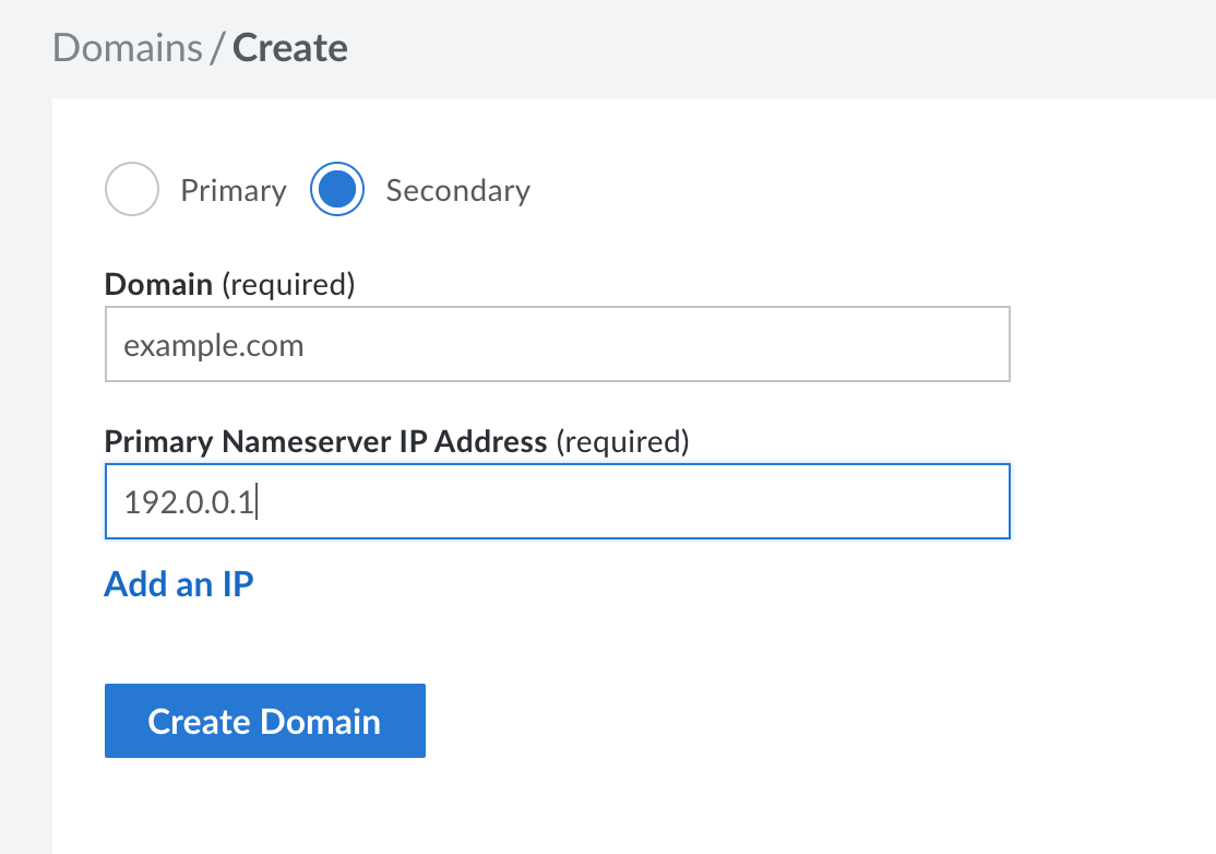 You then want to begin adding your domains to the Linode DNS Manager as secondary zones.