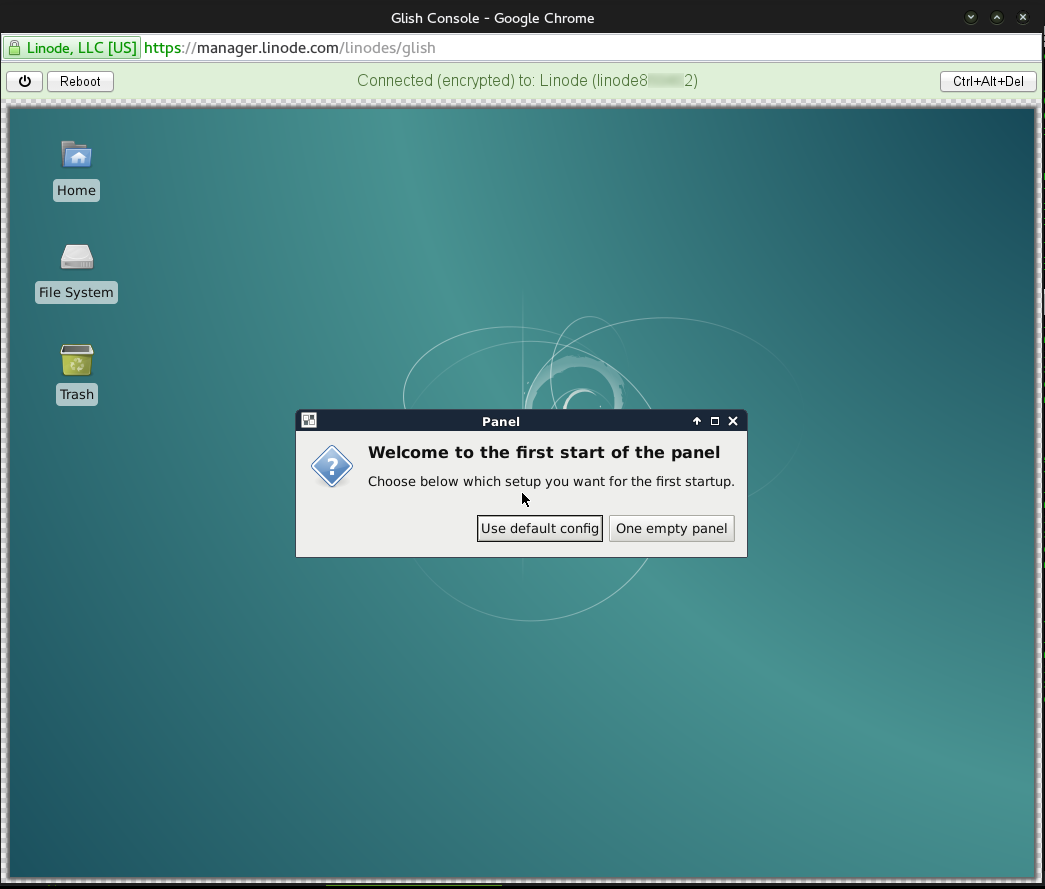 Glish is the graphical version of the Linode Shell (Lish). It allows you to use a graphic environment running natively on your Linode’s operating system.